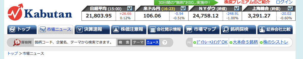 こういったサイトでは先に述べたような「銘柄の値上がり数・値下がり数」についてチェックできるのはもちろん、個別銘柄の株価推移の背景や決算情報などもあわせてチェックすることができます。
