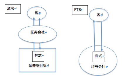 PTSとは証券会社が運営する、証券取引所を介さない取引システムのことです。