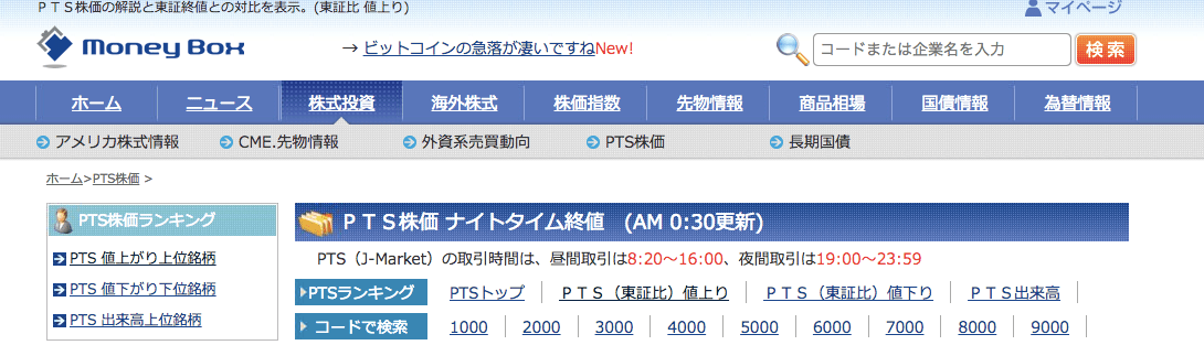 Money Boxも各国株式やPTS、決算情報など幅広い投資情報を集めたサイトです。
