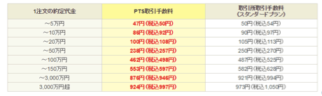 SBI証券は、PTSのほうが通常の取引所を利用した取引よりも手数料が低く設定されています。