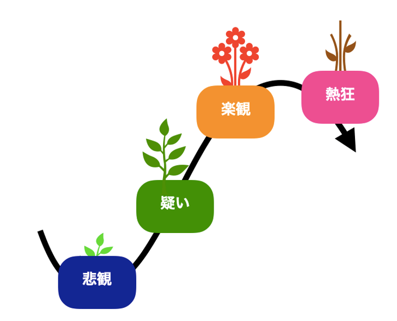 テンプルトン氏の言葉に、“強気相場は悲観のもとで生まれ、疑いの中で育ち、楽観の中で成熟し、熱狂とともに終わる”というものがあります。