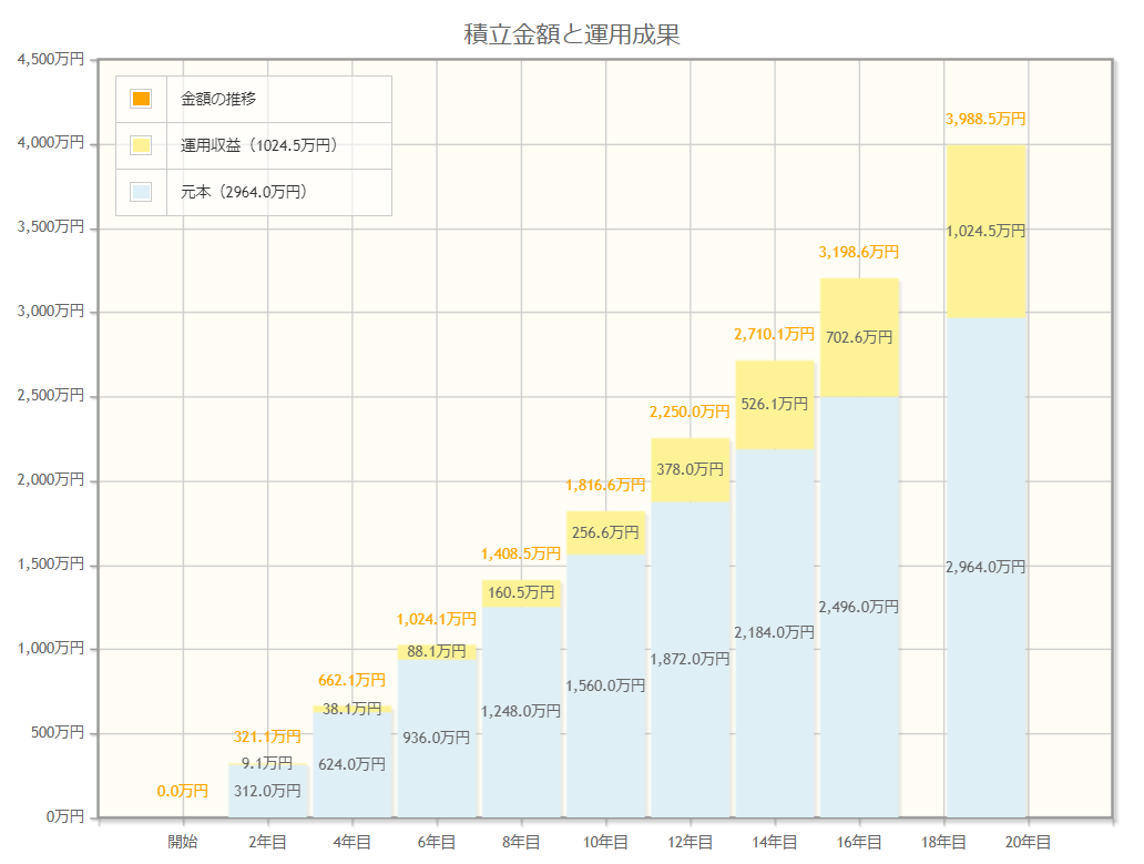 貯金額2000万円と合わせると、6662万円になります。貯金だけでコツコツと行うよりも約1600万増える計算になっています。
