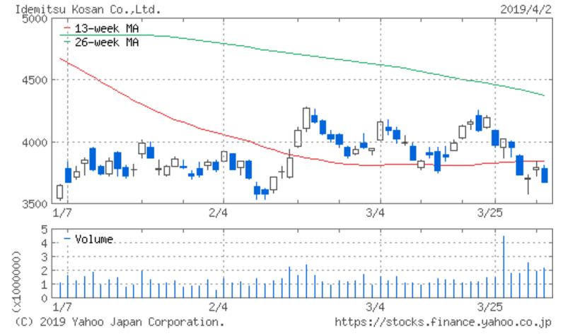 | 出光興産 (5019) | 3,795円 | 石油元売り国内2位。2019年4月に昭和シェルと経営統合。円高になれば石油・石炭の輸入コストが下がり、収益向上が期待される。 |