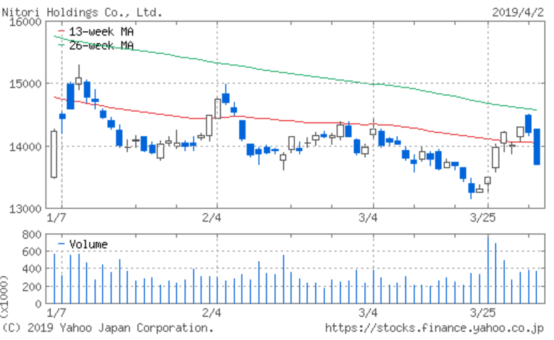 | ニトリHD (9843) | 14,210円 | 家具・インテリア製造・小売国内首位。開発輸入品割合が8割を占めており、対米ドルでの1円円高は営業利益を15億円押し上げる要因となる。同社会長似鳥氏は経済予測に長けていることで知られ、同氏の予測をもとに為替予約を行うことで円安リスクをヘッジしている。 |