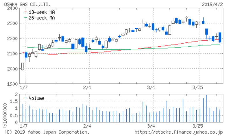 | 大瓦斯 (9532) | 2,191円 | 都市ガス国内2位。電力事業にも参入、燃料電池用触媒などの技術力にも定評がある。円高になれば燃料調達コストが下がり、収益向上が期待される。 |
