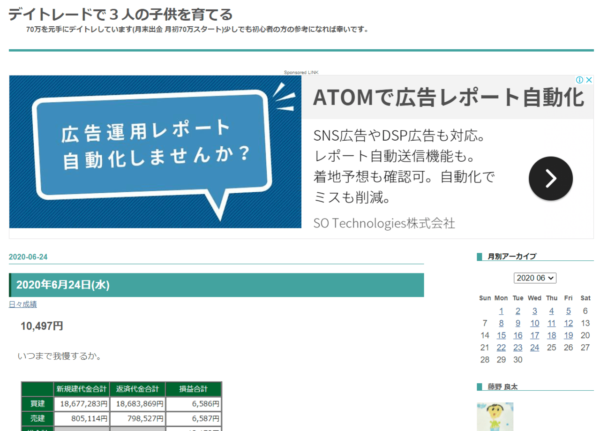 「デイトレードで3人の子どもを育てる」は、元手70万円からスタートした株式のデイトレーダー、藤野良太さんのブログです。
