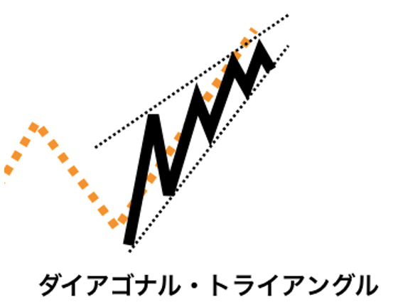 第5波をより細かな波に分解し、下値は切り上げながらも上値の伸びが衰えてくる「ダイアゴナル・トライアングル」が現れていれば、上昇波の終了・急落のリスクが高まっているサインです。