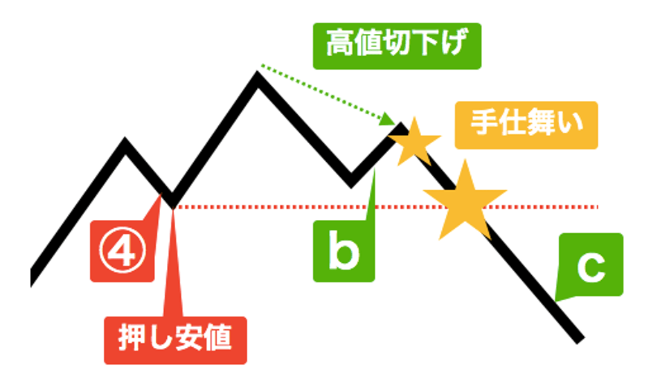 直前の下降波の余韻が残っており、投資家の迷いなどから値動きが鈍いことも多く、場合によっては再び下落に転じ、下降波が継続する可能性もあります。