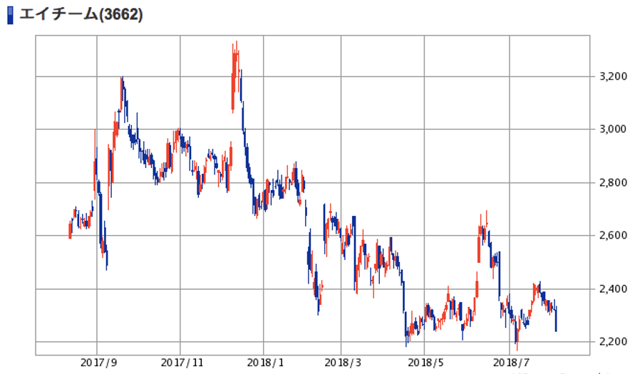 | (3662)エイチーム | 株価 (2018/8/3終値) | 2,242円 |