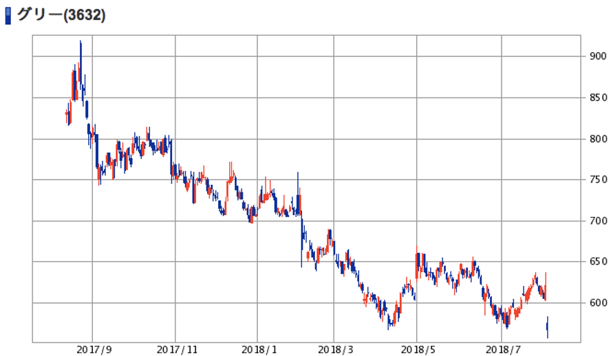 | (3632)グリー | 株価 (2018/8/3終値) | 568円 |