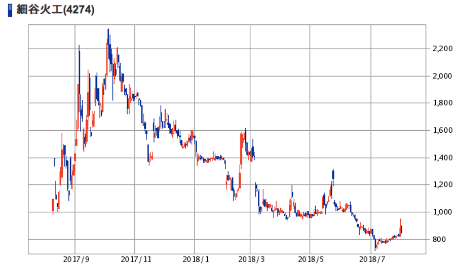 | (4274)細谷火工 | 株価 (2018/8/1終値) | 852円 |