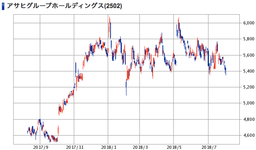 | (2502)アサヒグループHD | 株価 (2018/8/1終値) | 5,413円 |