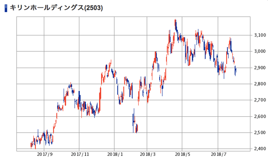 | (2503)キリンHD | 株価 (2018/8/1終値) | 2,884.5円 |