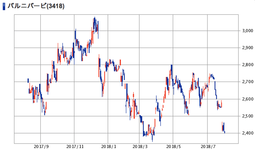 | (3418)バルニバービ | 株価 (2018/8/1終値) | 2,401円 |