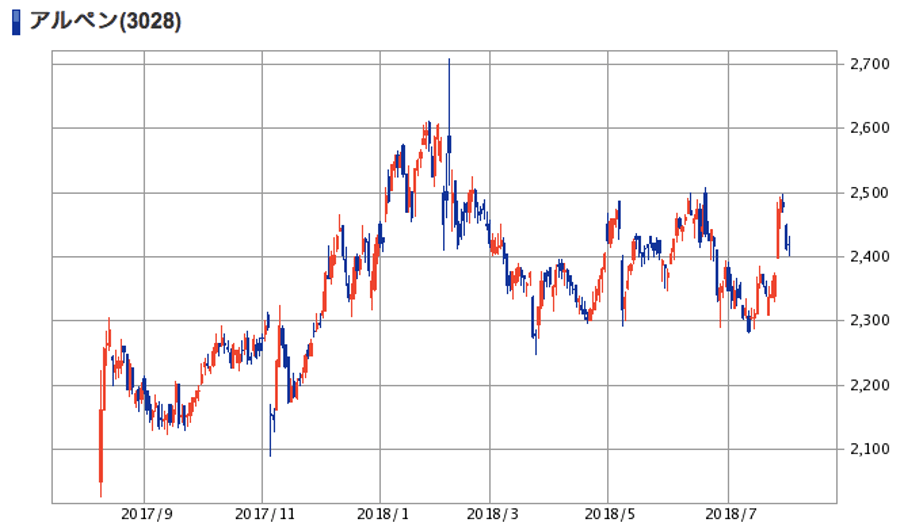 | (3028)アルペン | 株価 (2018/8/1終値) | 2,420円 |