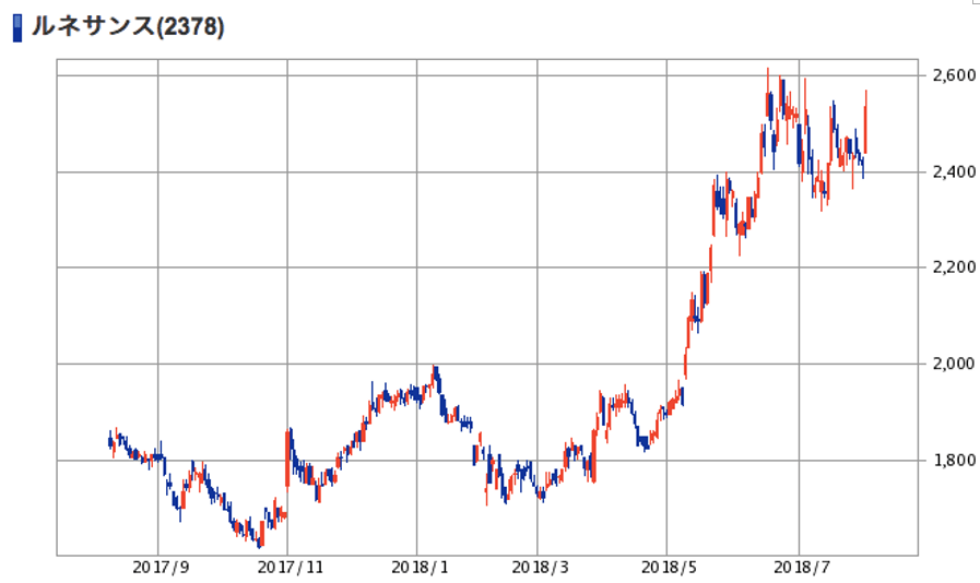 | (2378)ルネサンス | 株価 (2018/8/1終値) | 2,537円 |