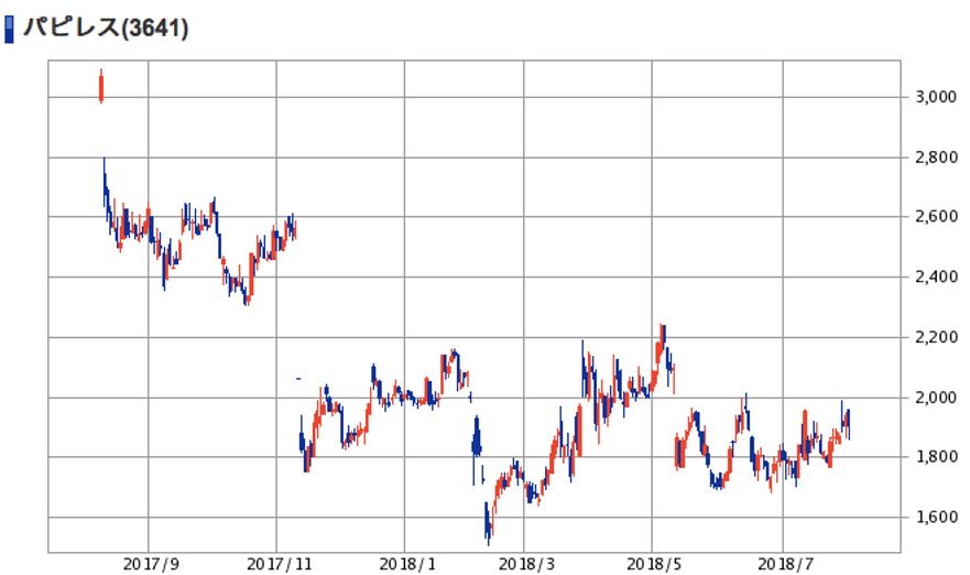 | (3641)パピレス | 株価 (2018/8/1終値) | 1,906円 |