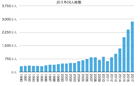 訪日外国人旅行消費額は、2017年には約4.4兆円(観光庁・訪日外国人消費動向調査(速報))と5年連続で過去最高を更新しています。