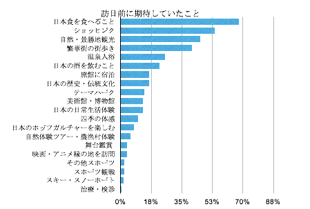 そして最も期待の高かったのが「日本食を食べること」となっており、訪日外国人にとってユネスコ無形文化遺産にも認定された「日本食・和食」が大きな魅力となっていることがわかります。