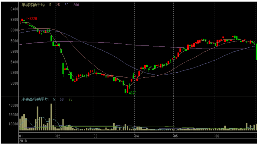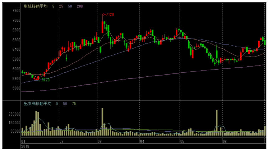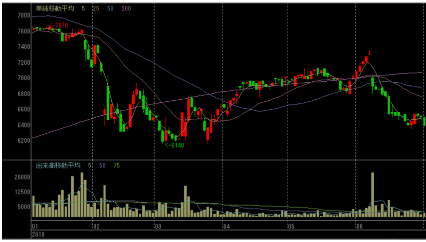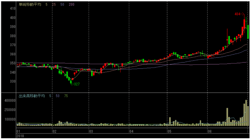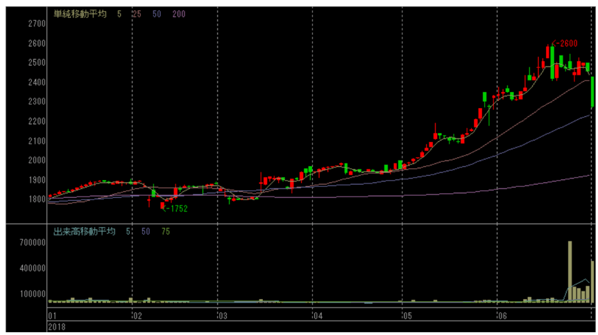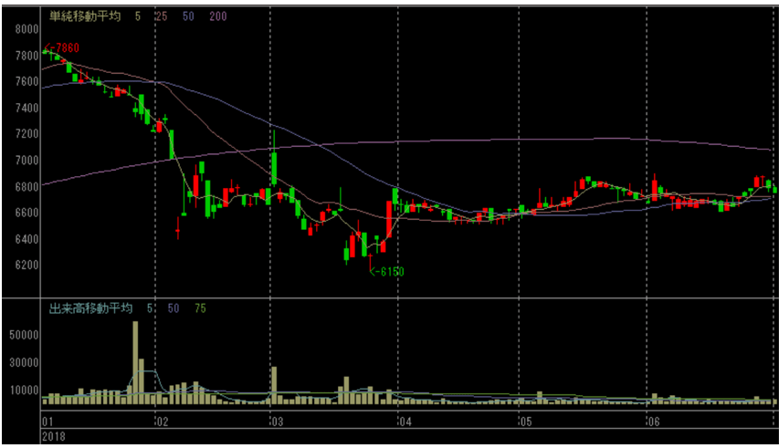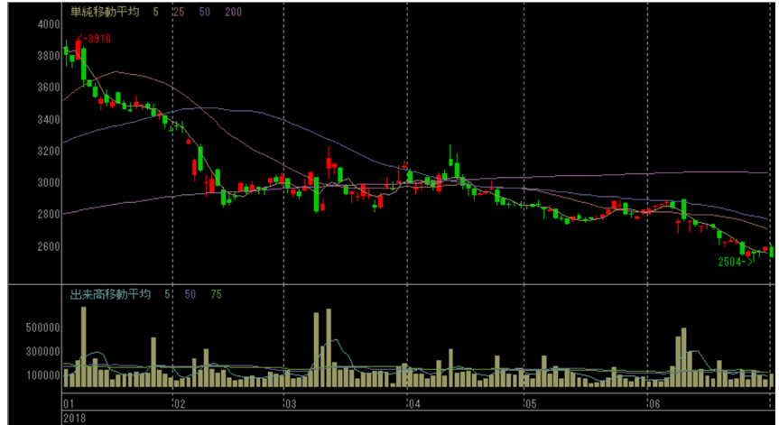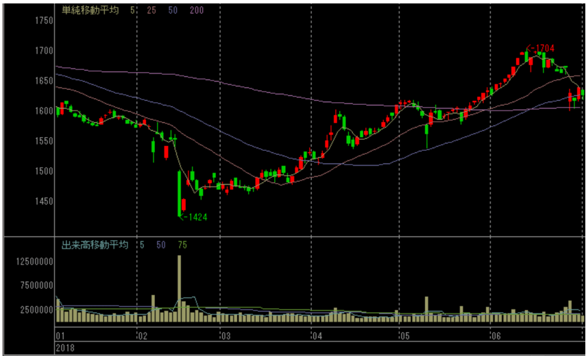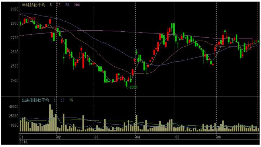 (2018年7月2日 すかいらーくHD <3197>日足チャート)