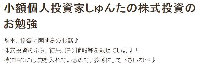 IPO投資、優待株に関する記事が多くなっており、個人投資家向けのブログと言えます。
