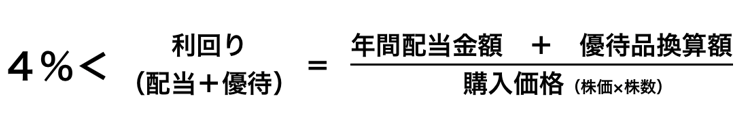 この利回りは、年間の配当金と優待品の換算額の合計をもとに計算します。