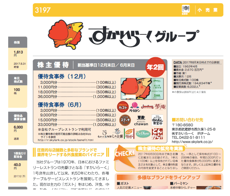 | 公式HP | http://ir.skylark.co.jp/stock/benefit.html | ||