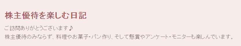 (1)株主優待を楽しむ日記