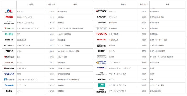 æ¥æ¬æ ª30éæã«é¢ããŠã¯ãæ°èäŒæ¥ã®å²åã¯å°ãªãã§ã30瀟ã©ããæ¥æ¬ã代衚ããäŒæ¥ãšãã£ãã€ã¡ãŒãžã§ãã