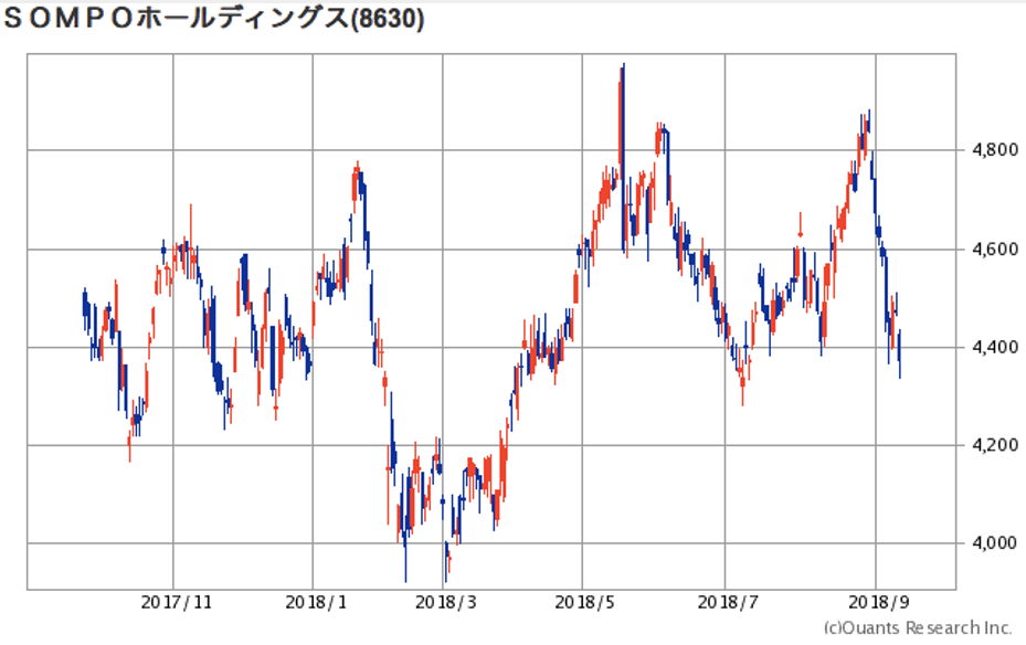 | SOMPO HD (8630) | 4,327円 | 損保ジャパン日本興亜損保などを傘下に持つ三大損保の一角。企業向けハラスメント保険を取り扱う。 |