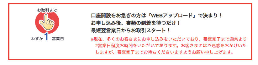 ただし、すぐに口座開設・取引開始するためには条件があります。最も重要となるのは極力「郵送」を挟まないということです。