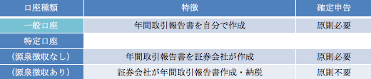 さらに特定口座では、税金を証券会社であらかじめ差し引き納税する源泉徴収ありの口座(源泉徴収口座)と、確定申告により納税する源泉徴収なしの口座(簡易申告口座)に分かれます。
