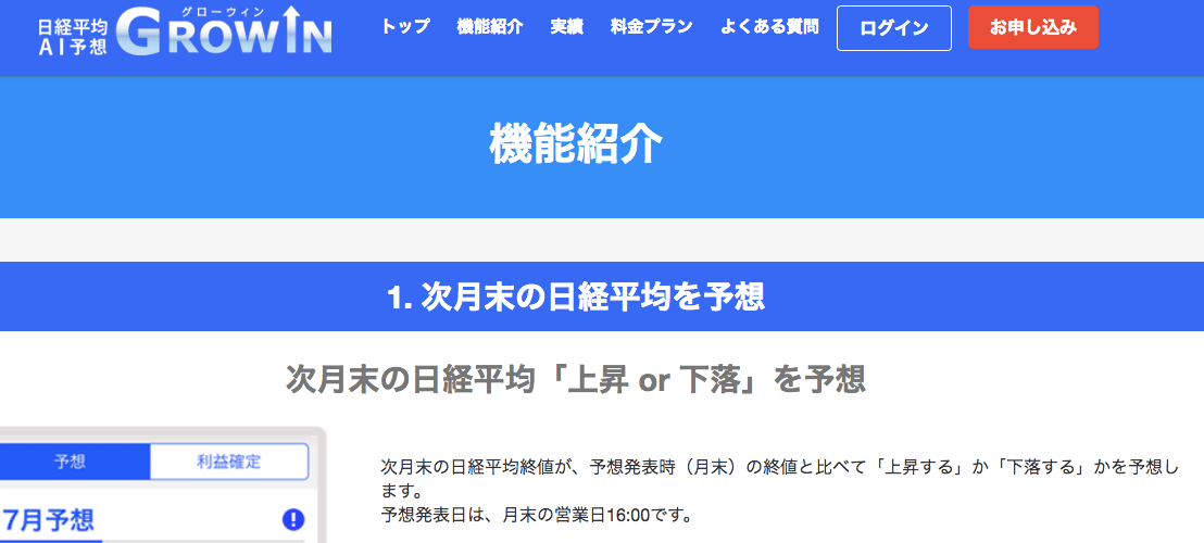 AIによる日経平均株価予想ツールグローウィン「GROWIN」も登場しています。