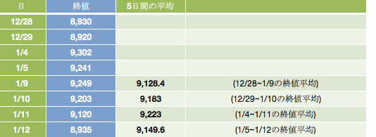 éå»5æ¥éã®çµå€ã®å¹³åãçµãã§ã§ããç·ãã5æ¥ç§»åå¹³åç·ããéå»20æ¥åãªãã20æ¥ç§»åå¹³åç·ããšãªããŸãã
