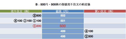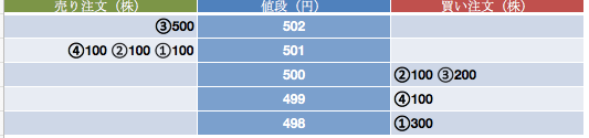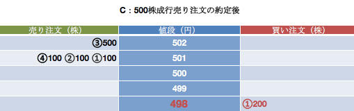 ãŸã500åã®è²·ã泚æâ¡100æ ªãšâ¢200æ ªãçŽå®ããŸããç¶ããŠ499åã®è²·ã泚æâ£100æ ªãçŽå®ããããã«498åã®è²·ã泚æâ 300æ ªã®å 100æ ªãçŽå®ããŸãã