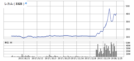 今年に入っても利益予想の上方修正、株式分割の発表によって、株価は1週間で昨年末終値から倍になり、2018年1月23日に上場来高値3,065円に達しました。
