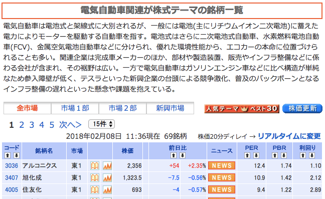参考:株探 電気自動車関連が株式テーマの銘柄一覧