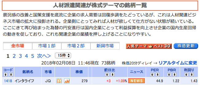 参考:株探 人材派遣関連が株式テーマの銘柄一覧