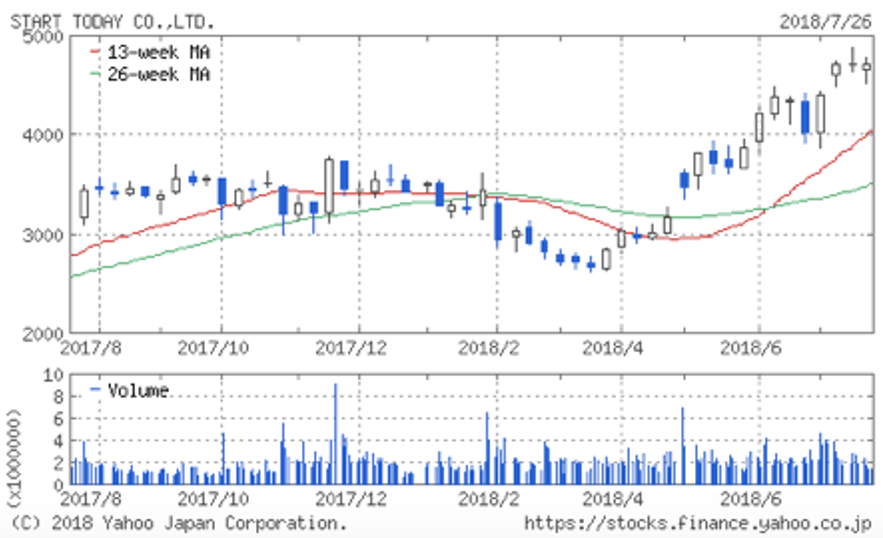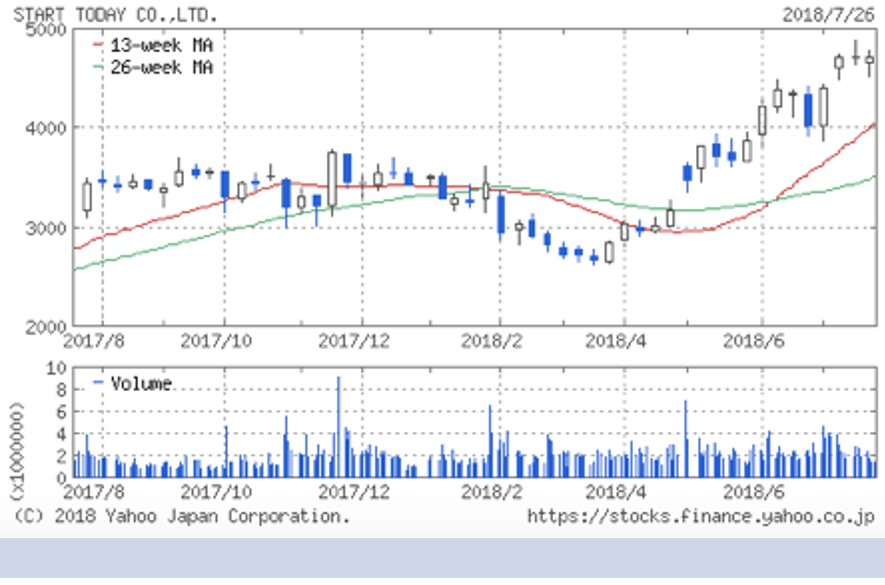 | (3092)スタートトゥデイ | 株価 (2018/7/27 終値) | 4,550円 |