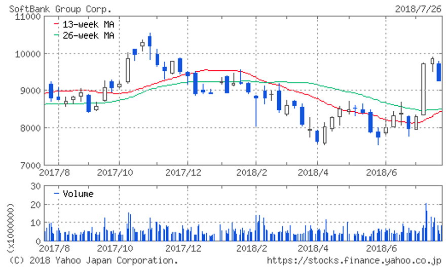 | (9984)ソフトバンクグループ | 株価 (2018/7/27 終値) | 9,385円 |