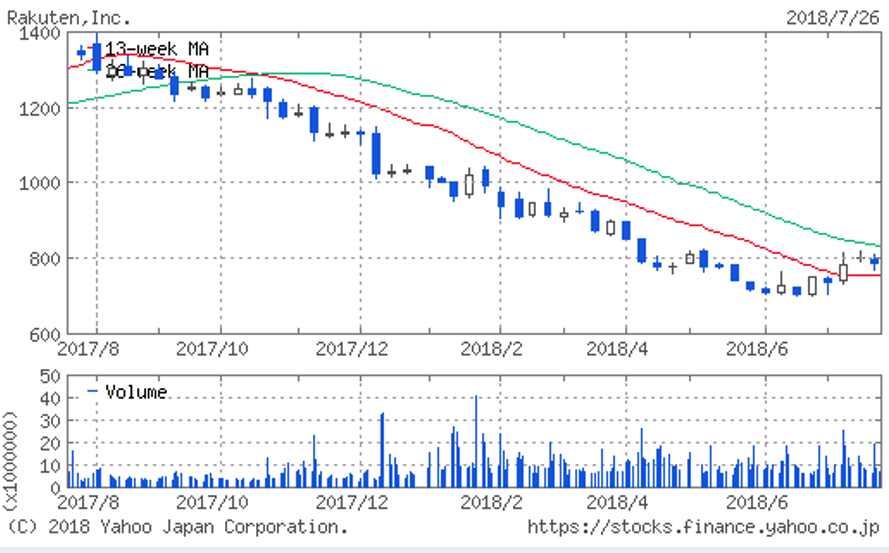| (4755)楽天 | 株価 (2018/7/27 終値) | 776.6円 |