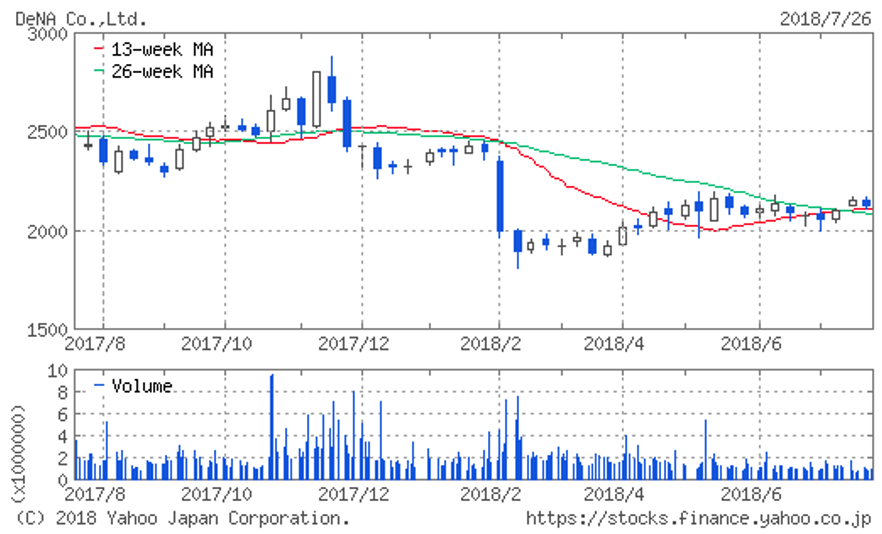 | (2432)ディー・エヌ・エー | 株価 (2018/7/27 終値) | 2,120円 |