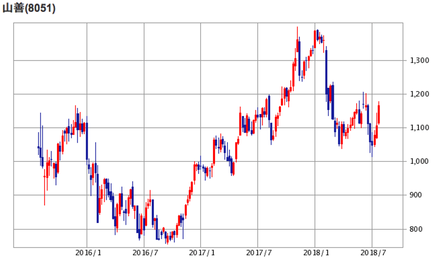 | (8051)山善 | 株価 (2018/7/27 終値) | 1,166円 |