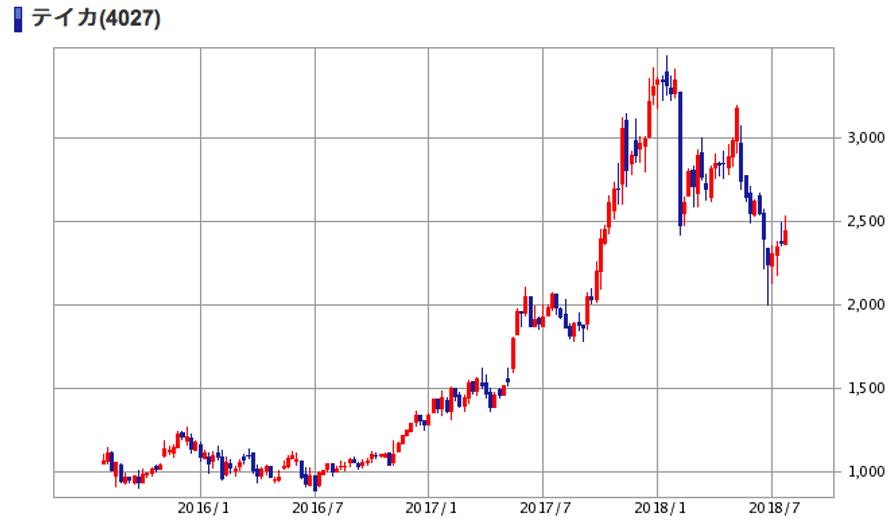 | (4027)テイカ | 株価 (2018/7/27 終値) | 2,443円 |