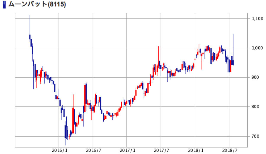 | (8115)ムーンバット | 株価 (2018/7/27 終値) | 942円 |
