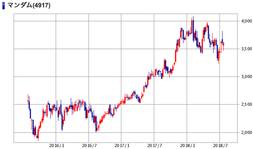 | (4917)マンダム | 株価 (2018/7/27 終値) | 3,610円 |