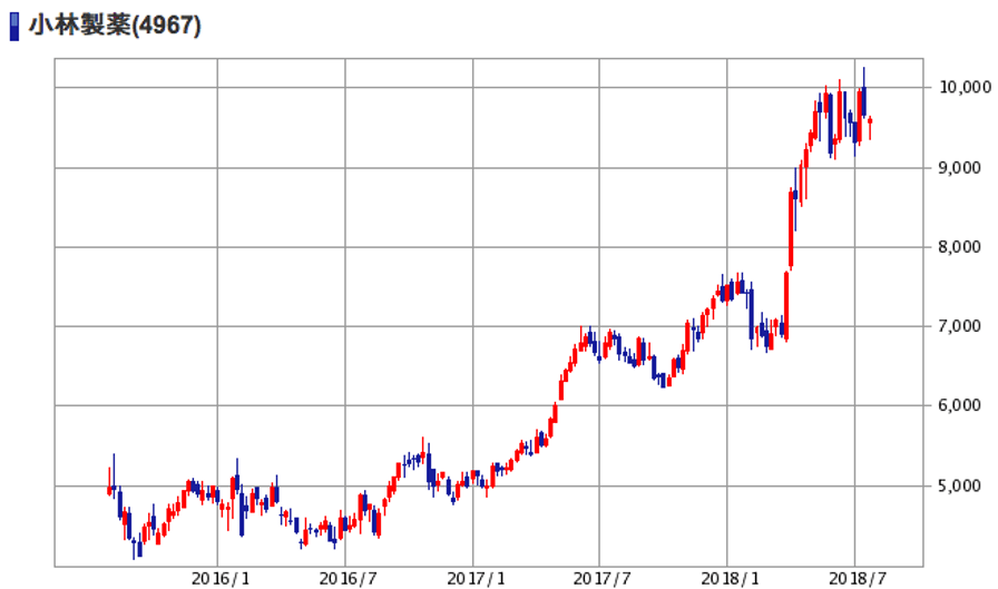 | (4967)小林製薬 | 株価 (2018/7/27 終値) | 9,600円 |