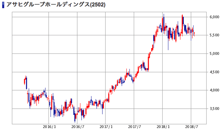 | (2502)アサヒグループHD | 株価 (2018/7/27 終値) | 5,569円 |