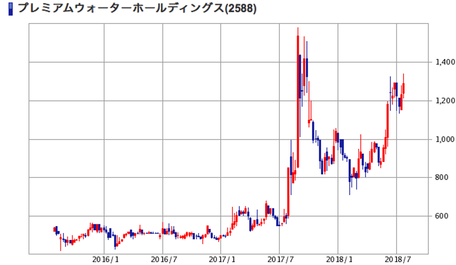 | (2588)プレミアムウォーター | 株価 (2018/7/27 終値) | 1,291円 |