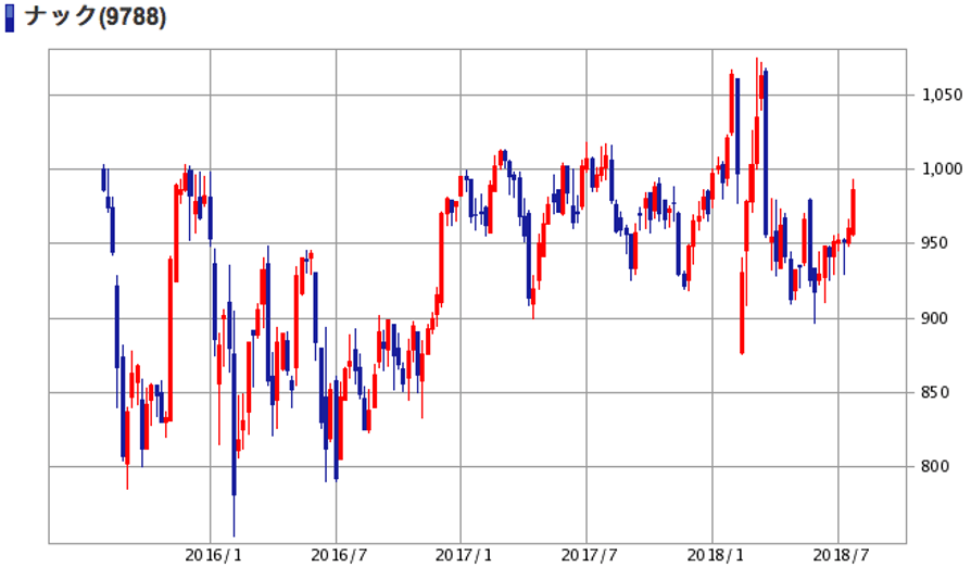 | (9788)ナック | 株価 (2018/7/27 終値) | 986円 |